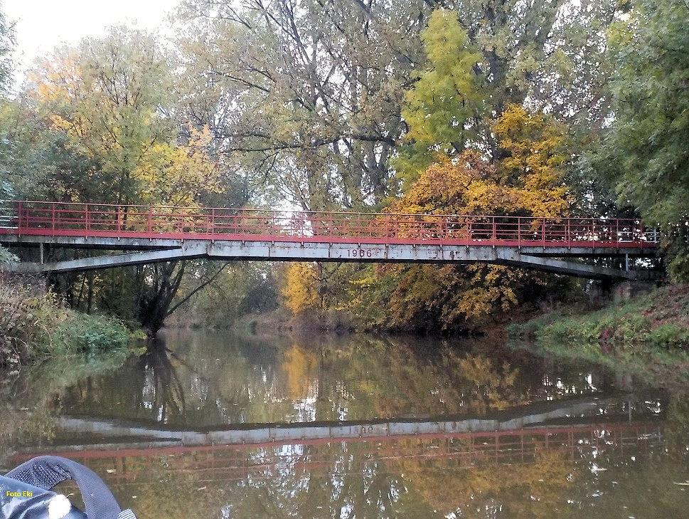 Pozor na přestavovaném jezu Sány trčí z koruny jezu armovací dráty (viz kilometráž). Nebezpečné pro ...