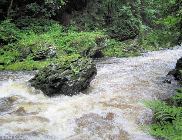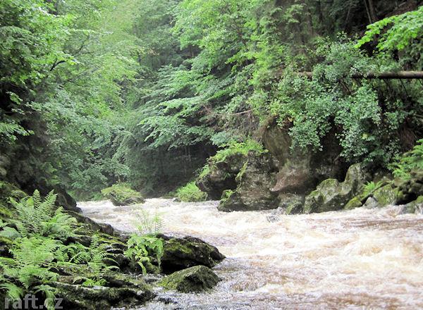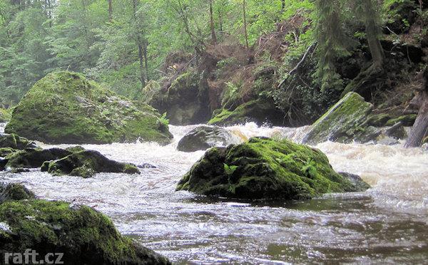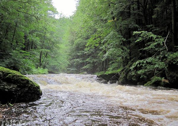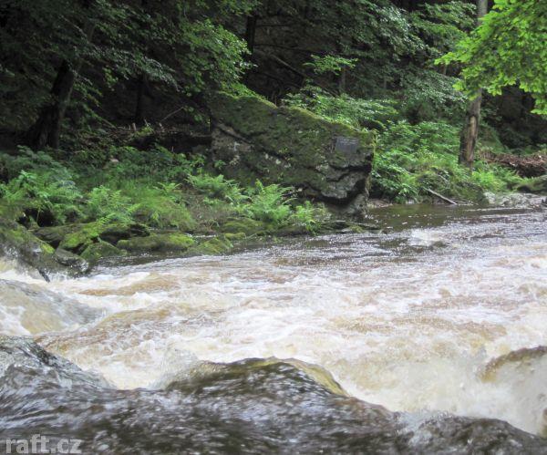 Strom přes řeku asi 100 m před Tobogánem. Dnes 8.10., při 16 m3 se dal objet těsně u pravého břehu, ...