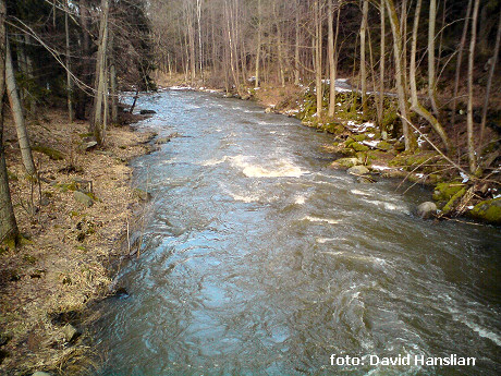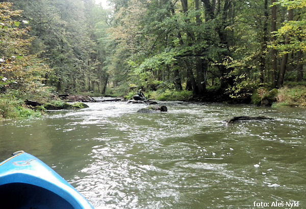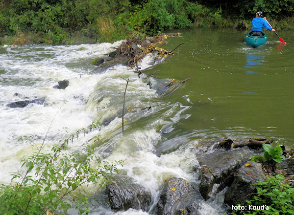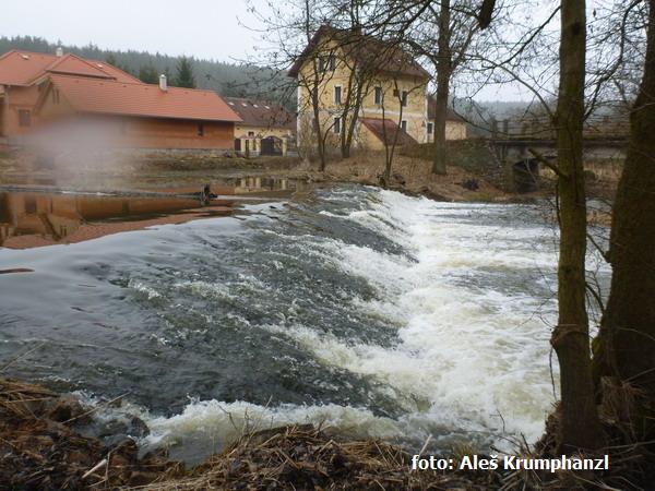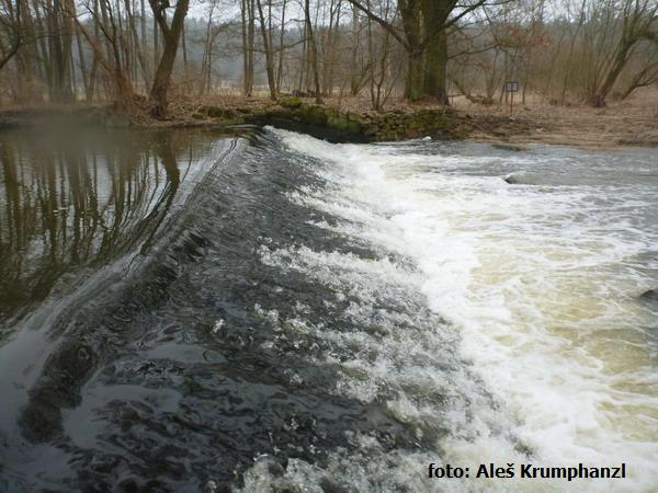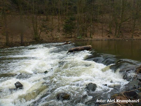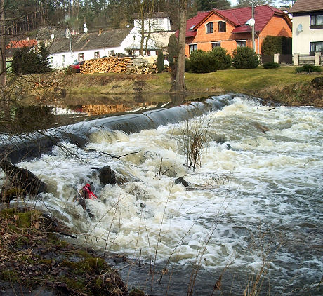 Wehr umtragen links oder rechts Stauhohe (m) 0,6 befahrbar !! následuje pěkný peřejnatý úsek až k soutoku se Skalicí 2,2 km (GPS: 49.4164058,14.1224578) |