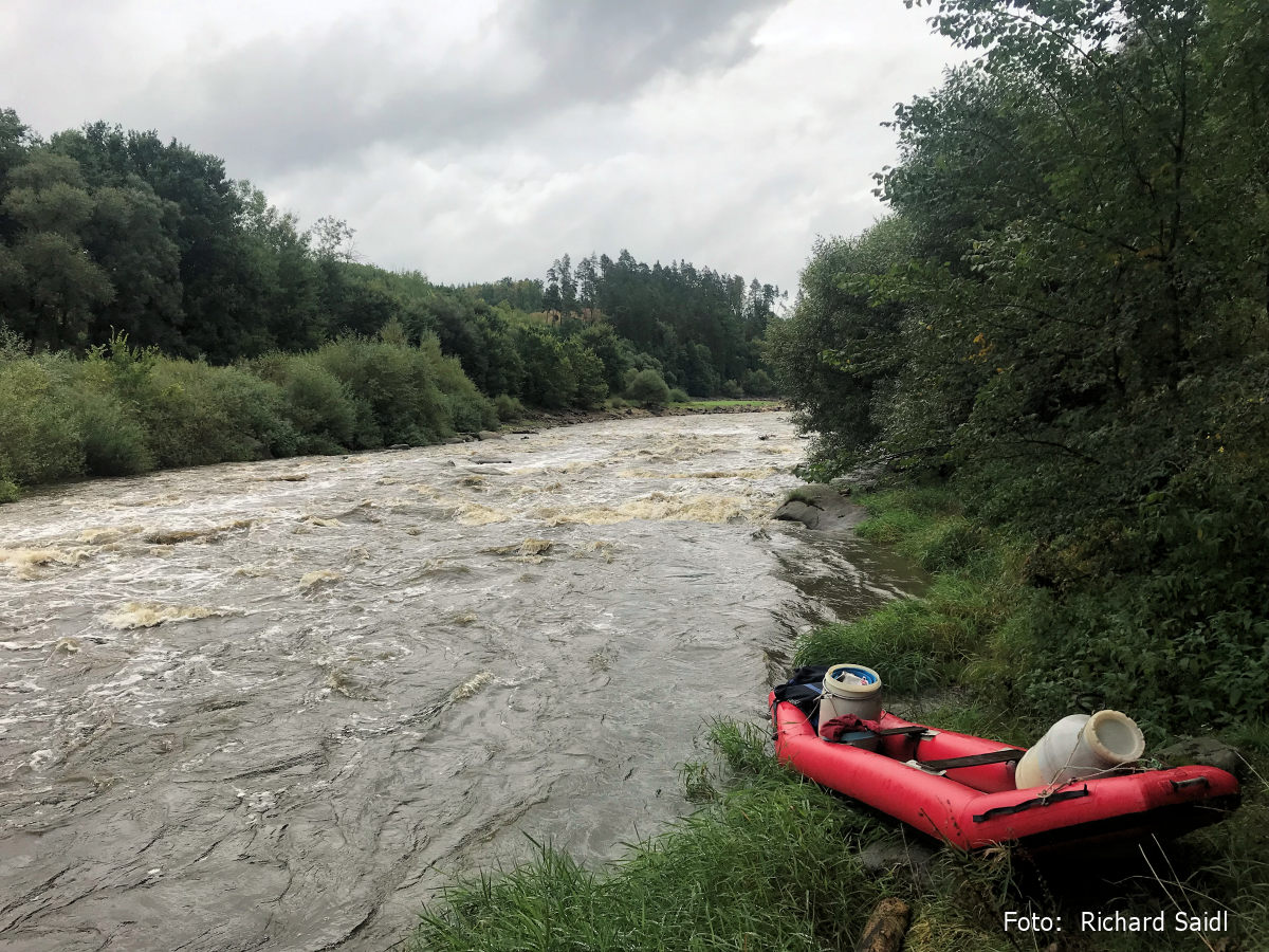Wehr Stufe Stauhohe (m) 0,6 befahrbar !! 1,1 km (GPS: 49.4244503,14.1072644) |