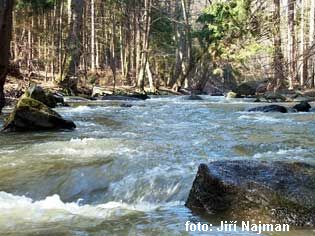 zufluss links do Otavy na ř. km 7,2 354 m n. m. ) und folgenden 4,6 km links, Brücke Strassen Zvíkovské Podhradí |