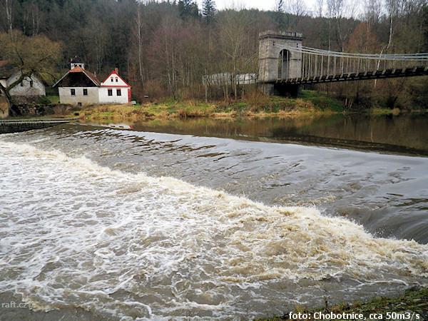 r.km 35,6 Jez Kvěchův mlýn při 25 m3/s v Klenovicích