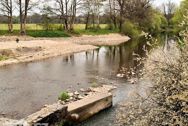 Na Nežárce je přestavován jez Hamr u obce Val. Zatím je zahražena polovina řeky a vytvořena příjezdo ...