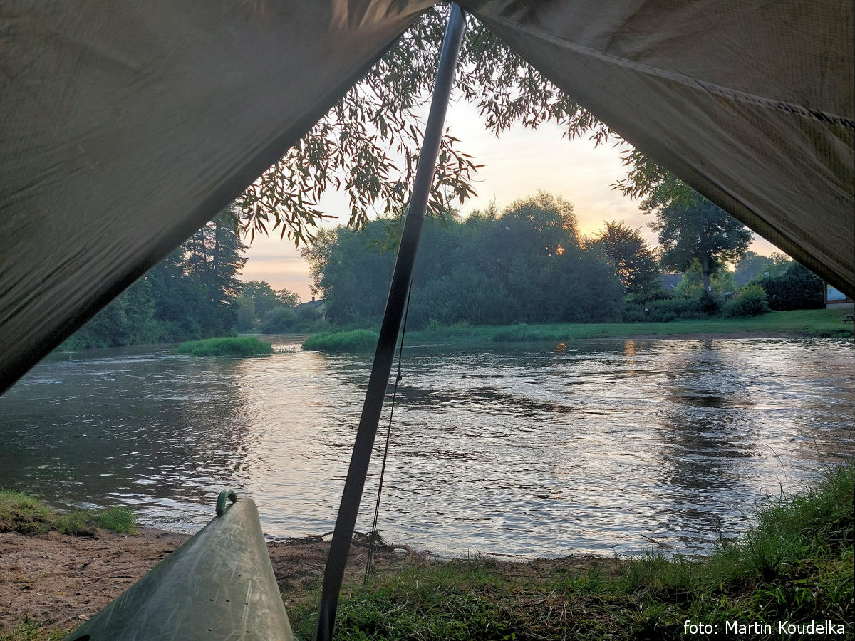 Wehr umtragen links Stauhohe (m) 1,2 !! (za vhodných stavů sjízdný rechts, přes korunu) Královské Poříčí links, Restaurant Büfett Post Kirche links, Bahnhof Královské Poříčí 600 m vl 0,6 km |