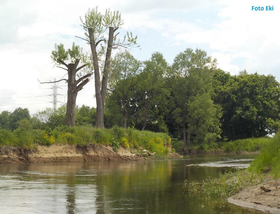 2 spadené mohutné stromy přes celou řeku v useku Petrovice (27,1)- Štenkov (18,3), cca na 25 ř.km a ...