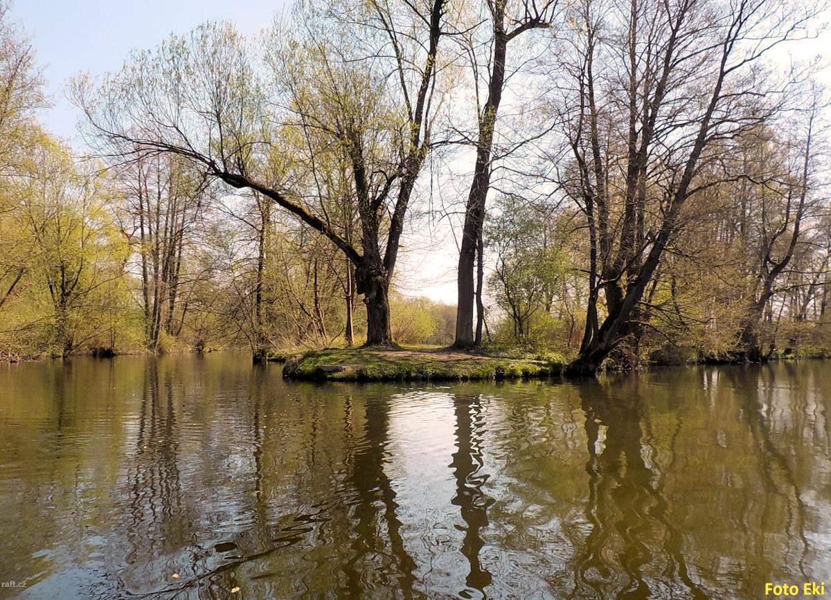 Mohutný padlý kmen přes celou řeku, cca na 21,3 km - mezi kamenným záhozem a Štěňkovem. Je to za zat ...