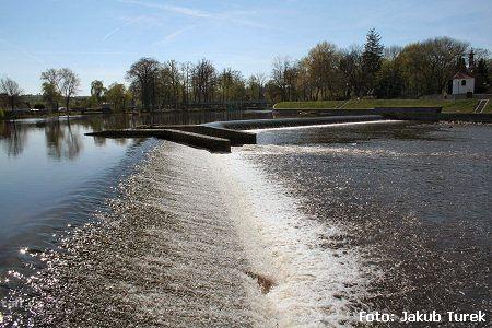 Z důvodu přestavby je koruna jezu v celé šíři snížena (odbourána ...