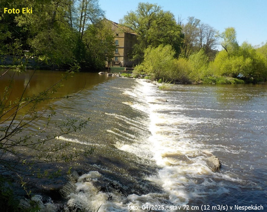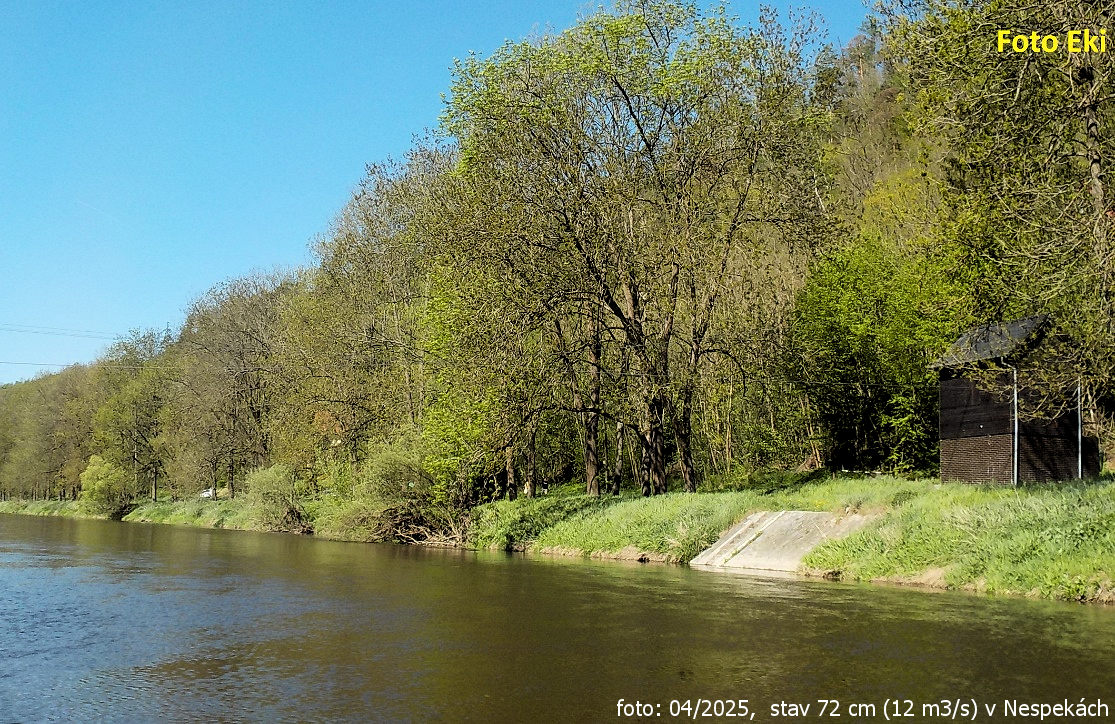 Wehr-Schleuse mitte umtragen links Stauhohe (m) 1,2 Kanal rechts, !! Poddubí (obvykle sjízdný jen přes korunu u břehu, propust je zahrazena vysokým hrazením. Většina vody je navíc odvedena náhonem do elektrárny, pod jezem je dlouhý úsek suchý.) 0,7 km |
