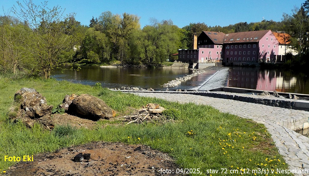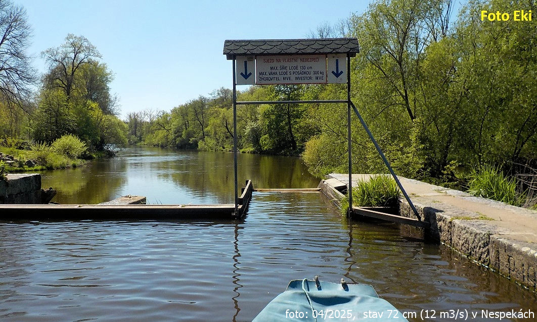 Wehr-Schleuse mitte umtragen links Stauhohe (m) 1,3 Kanal rechts, !! Nespeky rechts, (propust je trvale zahrazena vysokým hrazením, pod jezem lomový kámen, většina vody je navíc odvedena náhonem do elektrárny) Hotel (pension) Restaurant vp 0,3 km |