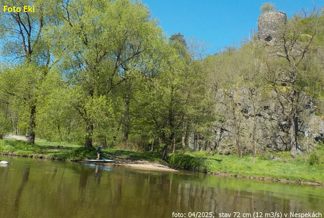 Brücke Steg inoffizielle Campingplatz pod hradem links, Zbořený Kostelec 100 m links, Ruinen Zb. Kostelec 100 m rechts, zufluss rechts Kamenický (Čakovický) Bach 1,5 km |