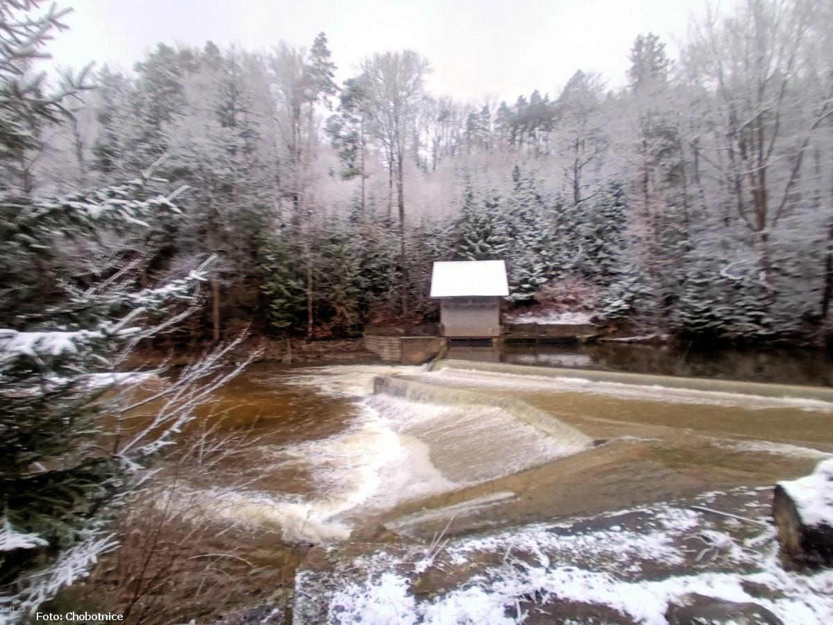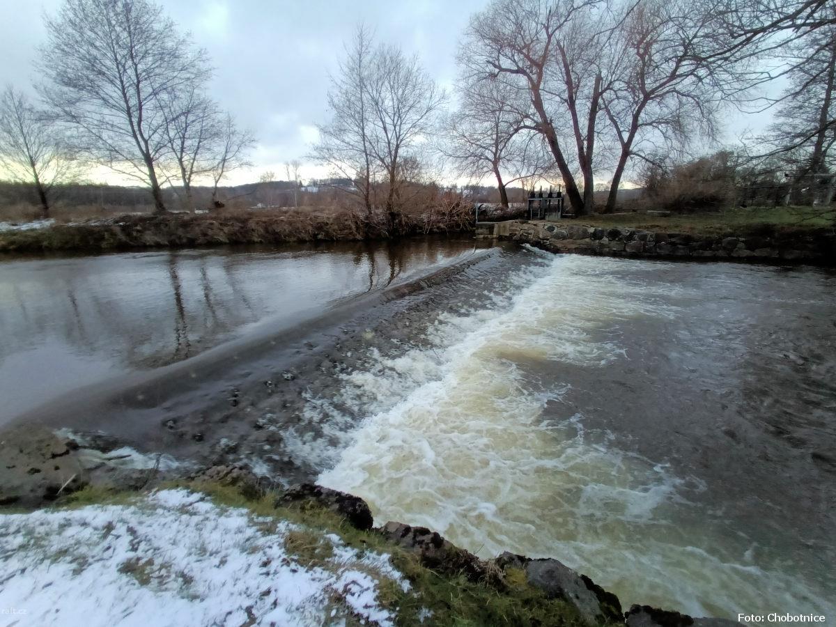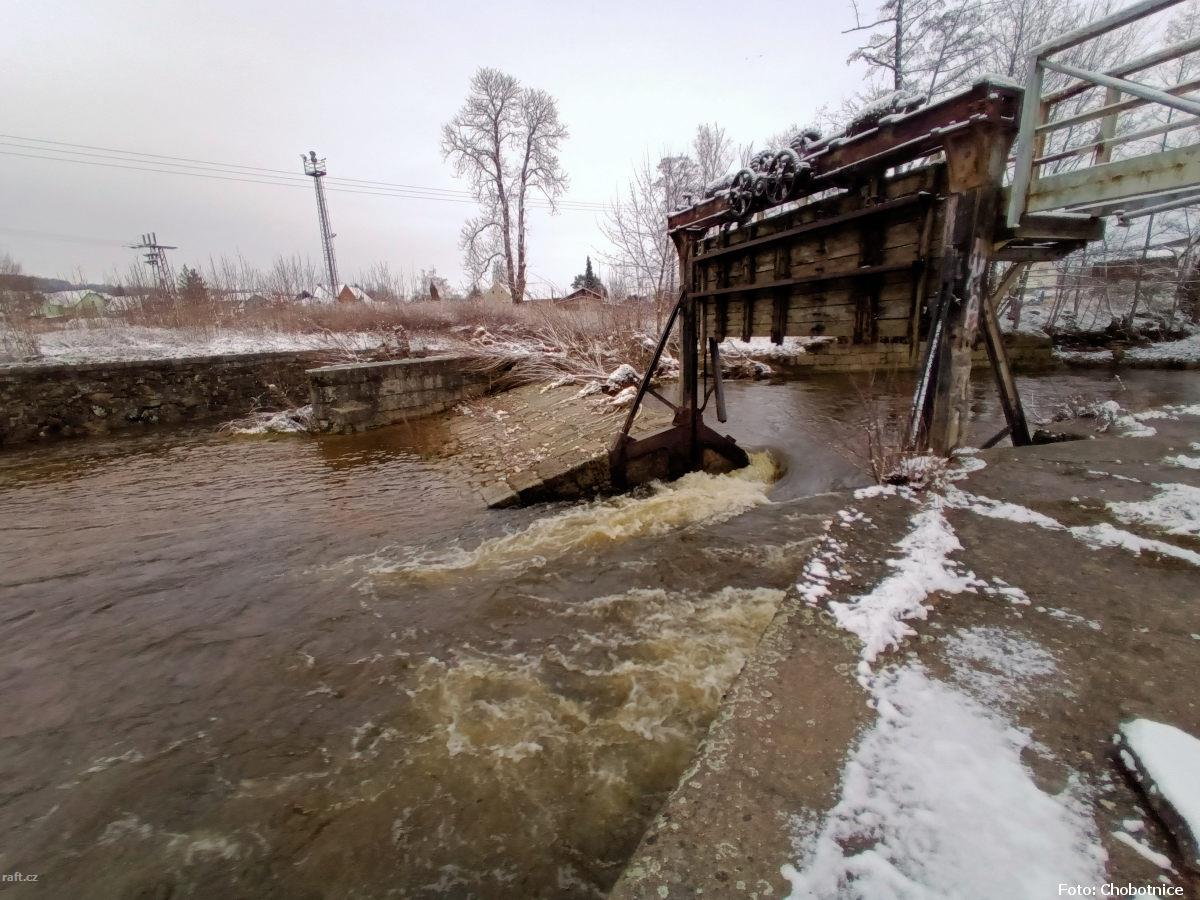 r.km 6,8 Zbytky jezu za průtoku 5 kubíků v Předlánce 21.12.2024
