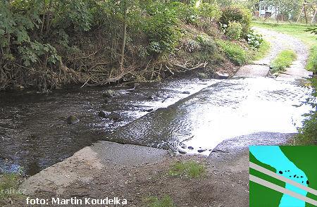 r.km 3,9 Jez Hradiště pevný, přímý jez. Šířka přelivné hrany je 18 m a spád 2,5 m. Nad i pod jezem jsou břehy toku zpevněné zdí.
