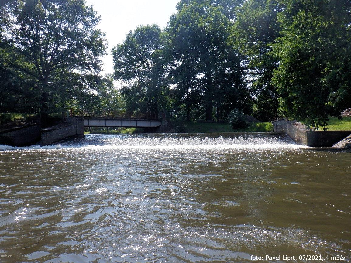 r.km 71,5 Pevný, přímý jez, dlouhý 29,39 m. Jez je ostrůvkem rozdělen na dvě části