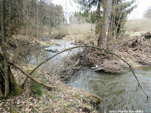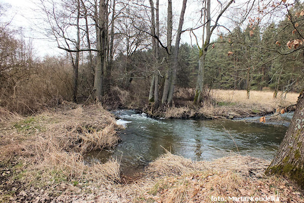 zufluss rechts Mezholeský potok, začátek regulace 1,0 km |