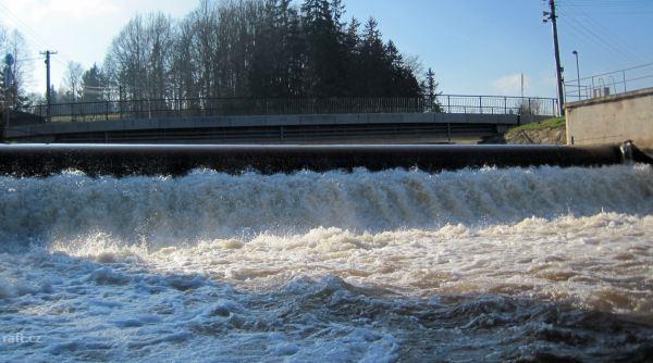 Přestavuje se jez na km 41,8 Bohuslavice nad Úpou. Elektrárna bude vlevo, přenášet asi půjde jen vpr ...