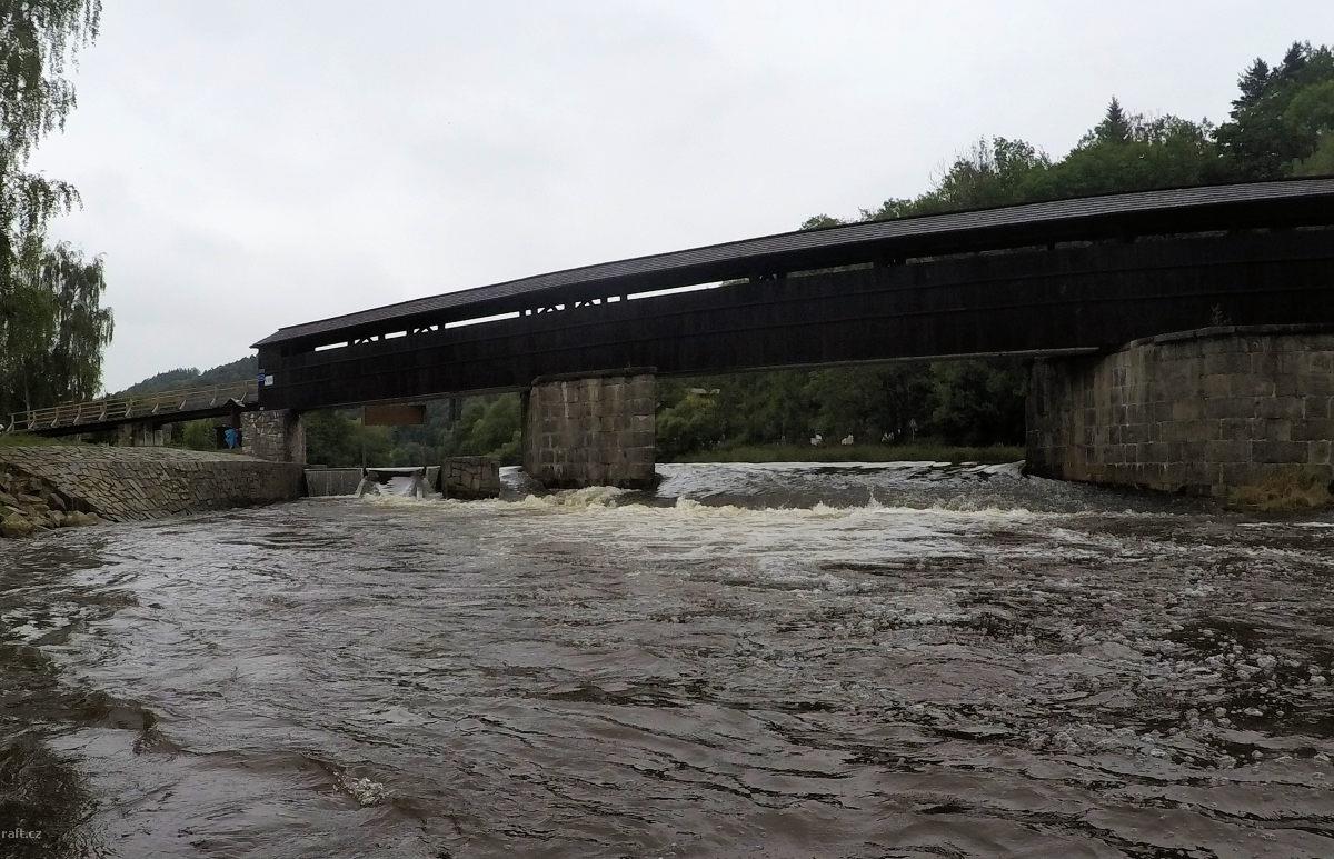 r.km 284,9 Na Rechlích 07/07/2022, stav 40 m3/s v Krumlově