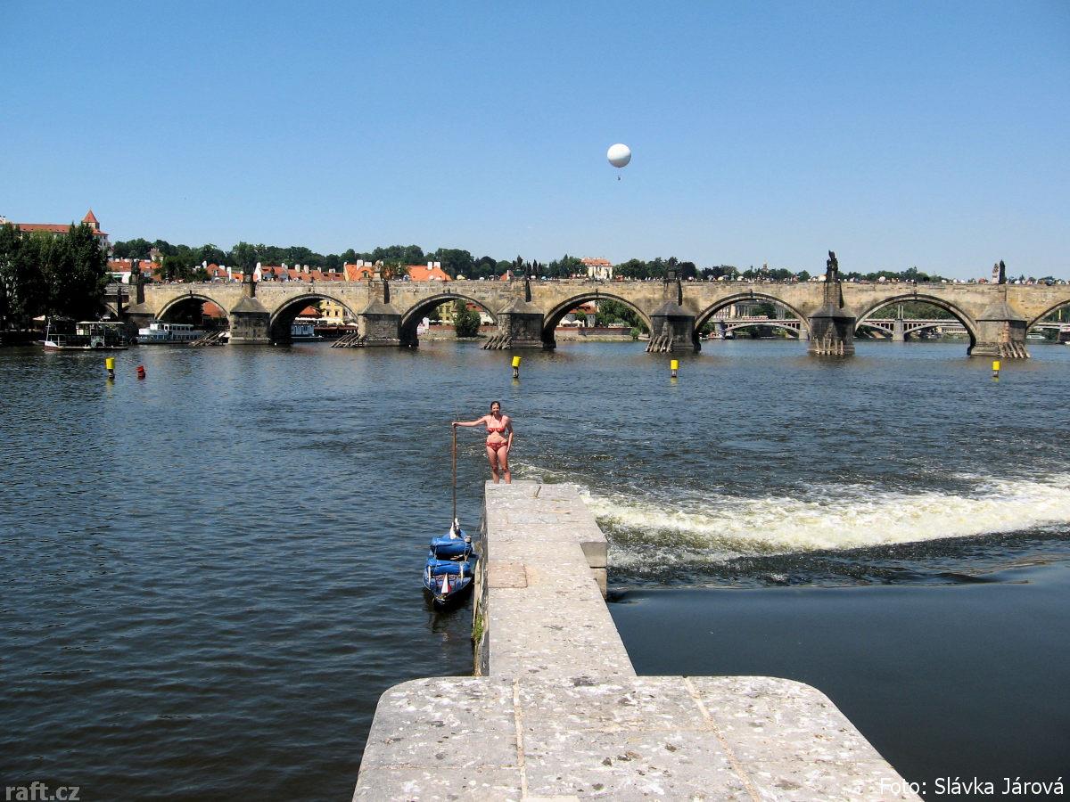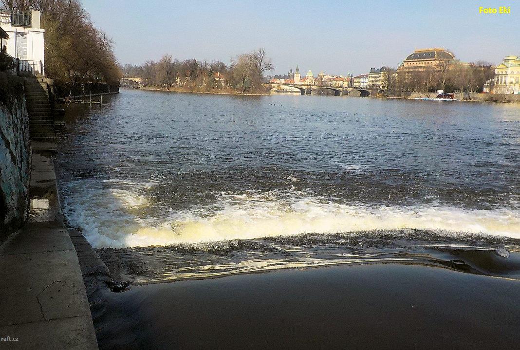 r.km 53,1 Staroměstský jez v pozadí s Karlovým mostem