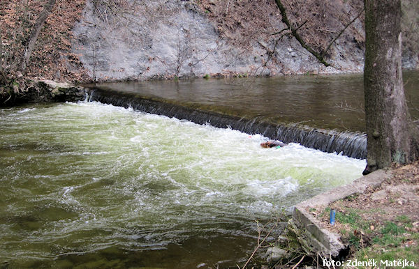 Stauhohe (m) 2.5 unbefahrbar , lang Kanal links, regulační zdi !!, nutno přistát před nimi a přenést přes most