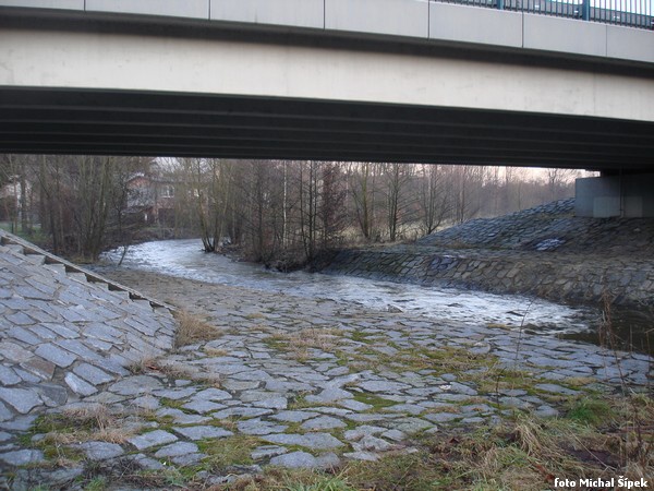 zufluss links Lomský Bach Vitenčův mlýn rechts und folgenden 200m Brücke Strassen (local)
