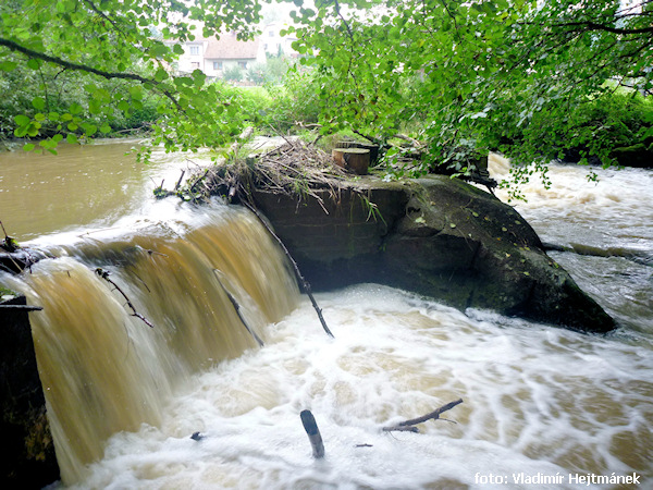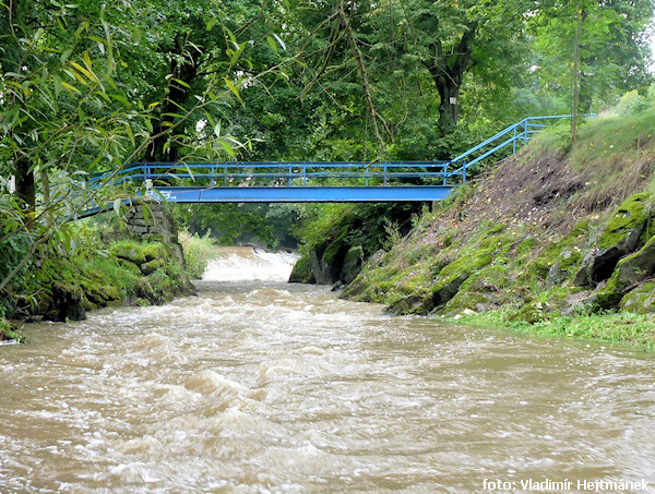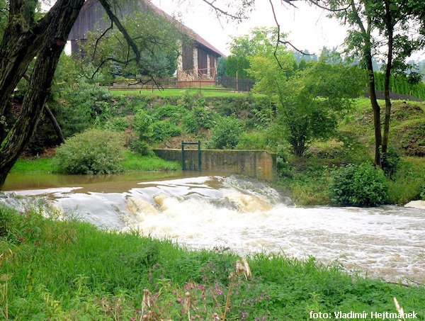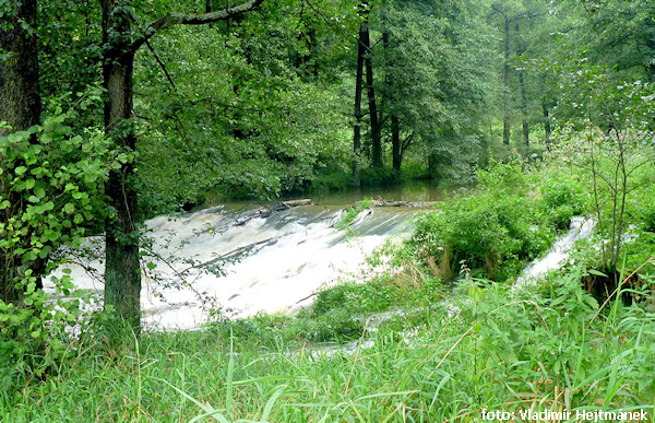 Wehr umtragen rechts Stauhohe (m) 1.0 Kanal links, Brücke Steg weiter zarostlá místa 1,2 km |