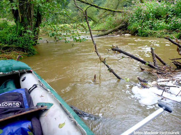 Wehr umtragen links Stauhohe (m) 2.5 Kanal rechts, Šeborov 500m links und folgenden 400m Brücke Steg 0,9 km |