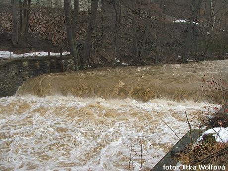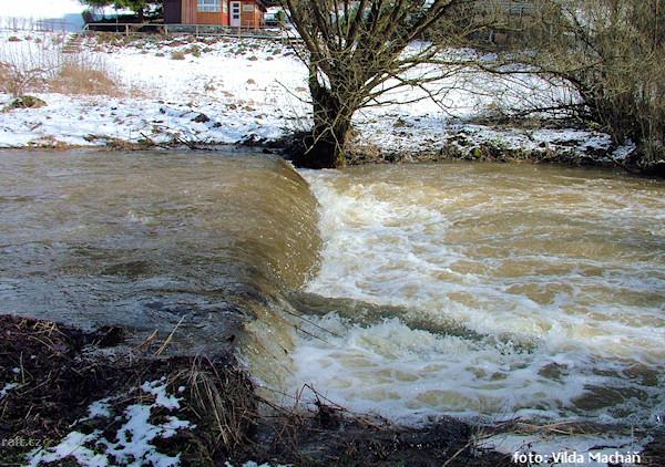 Bystřice 19.3.2005 vodočet v Hrubé Vodě 110cm, v Domašově pozor, ještě před prvním jezem je přes řek ...