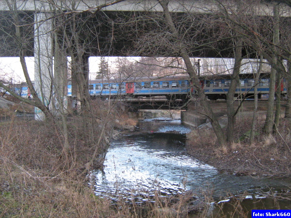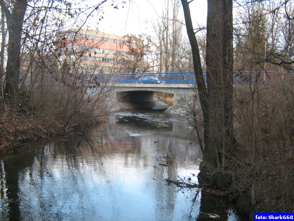 sídliště links, továrna rechts und folgenden 100 m Brücke Strassen 0,3 km |