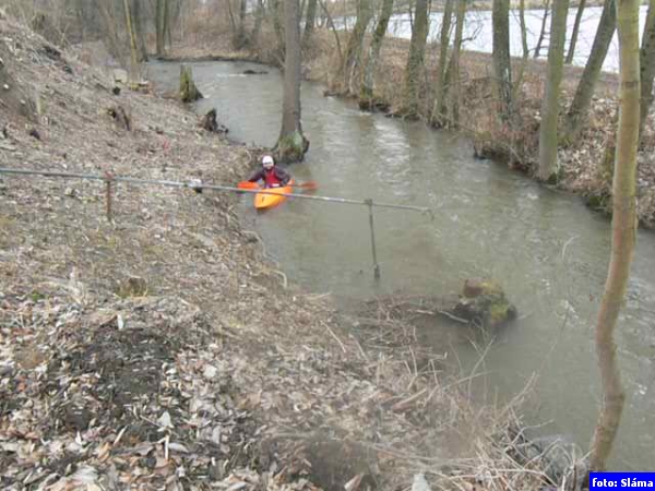 Wehr Stufe Stauhohe (m) 1.0 vývar! und folgenden 50m zúžené místo s peřejí 0,1 km (GPS: 49.474395303,16.961345673) |