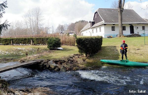 V dolním úseku, 3,5km pod jezem Březina, tedy v místě těsně za osadou Šárka kde řeka tvoří velký ost ...