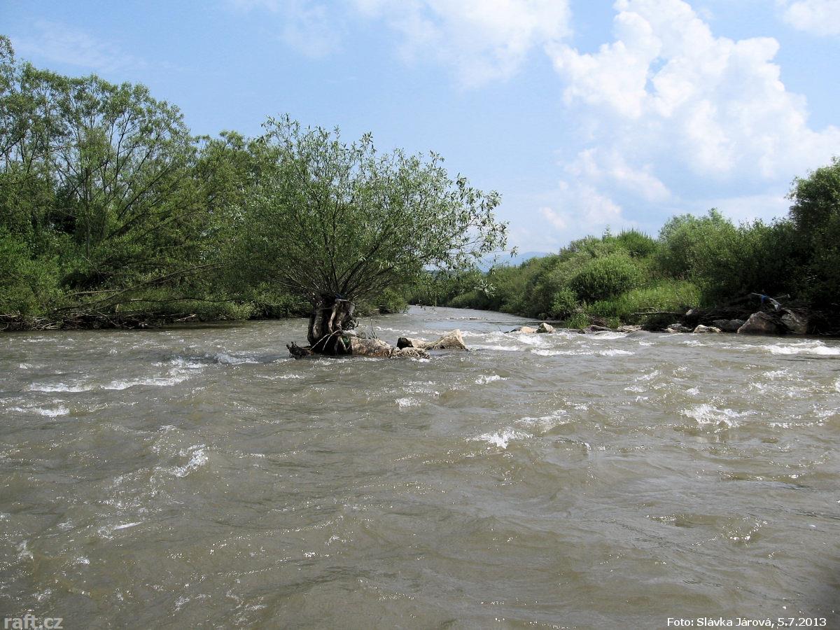 Splouvání Hornádu v úseku od Hrabušic je limitováno na vodočet 70 - 110 cm. Jsme tu pěšky a tok v so ...