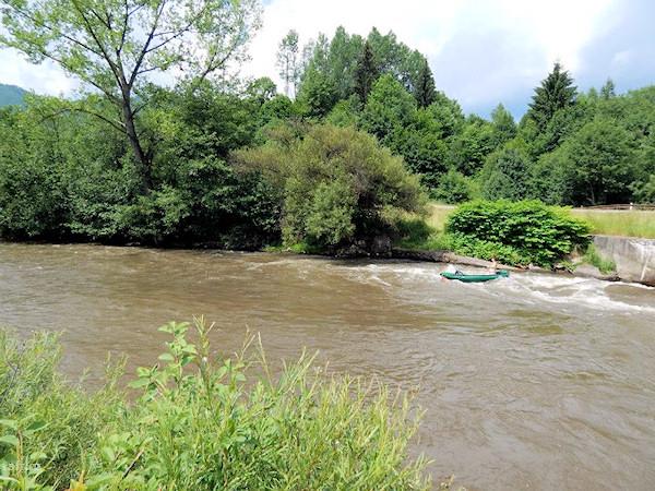 20.8. přehrada v Šalkové vypuštěná, podél obou břehů je spousta hlubokého bahna, vytáhnout loď je po ...