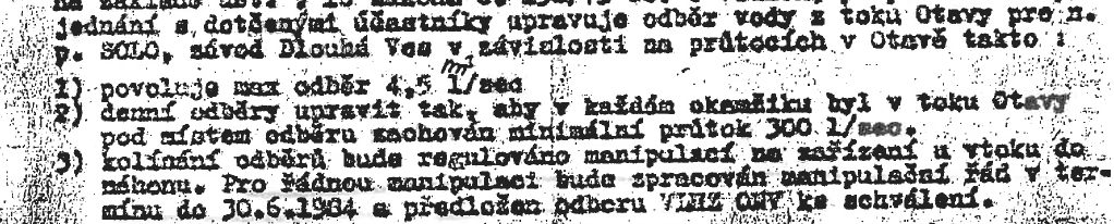 Část rozhodnutí k povolení pro MVE Dlouhá Ves