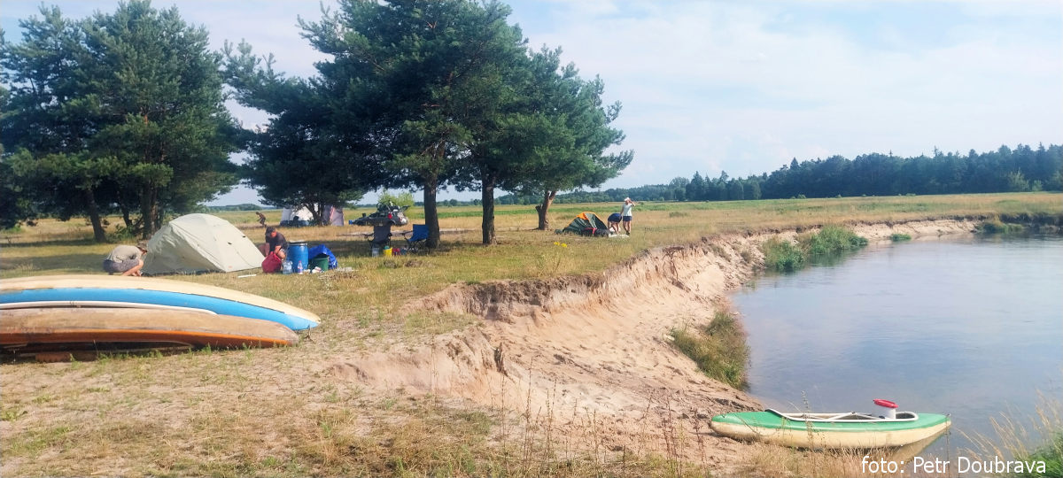 Nida (spolu s Černou Nidou) nabízí poměrně velké možnosti pro táboření, zejména pokud si vezete věci v lodi. Horní tok je sice až nepříjemně plný „terenow prywatnych“, kam je vstup zakázán nebo povolen pouze „dla klientów“ daného provozovatele, ale i tak se najdou místa, kde se dá zdarma tábořit. Střední a dolní tok je pak otevřený v krajině plné luk, nouzových tábořišť se dá nalézt celá řada. V dolní části jsou zřízené čtyři oficiální „przystaně kajakowe“ (Pińczów, Chroberz, Wiślica, Nowy Korczyn), kde je táboření zdarma a je možné zde dobře zaparkovat i auta pod dohledem kamer (v Pińczówě je bezplatné parkování u aeroklubu kus od vody směrem do města). Přístavy už sice poněkud chátrají a místní si je mění na jakási střediska místní zábavy, ale dosud (2025) fungují i jako přístavy a tábořiště. Pro vícedenní plavbu s bagáží v lodích jsme zvolili nejprve úsek Morawica – Pińczów, v obou se dá bezpečně parkovat blízko vody. Obě města jsou vzdálena necelou půlhodinu jízdy autem, naopak řeka teče velikým obloukem a splutí zabere až čtyři dny. Začátek plavby po Černé Nidě vyžaduje pro plavbu na těžko o něco víc vody, než je v létě obvyklé. Stav vody lze sledovat na hydrologických stránkách na vodočtu přímo v Morawici. Měli jsme štěstí na deště v předchozích dnech a voda vystoupala někam k 130cm a průtoku kolem jednoho kubíku, což bylo pro plavbu optimální.