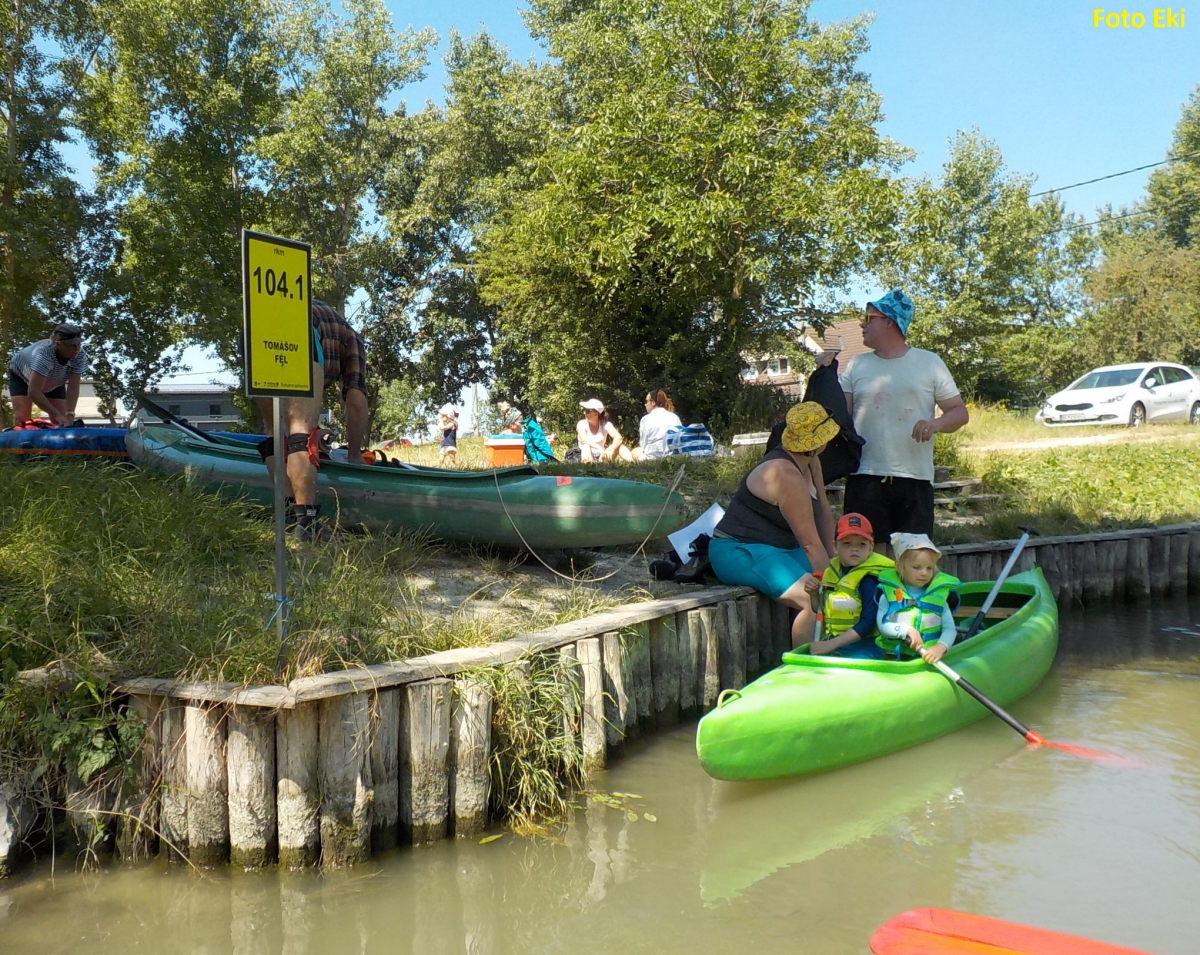 Malý Dunaj teče také rychle, ale aspoň tam nejezdí velké lodě přinášející vysoké vlny. Začínáme v Tomášově, kde je krásné přírodní tábořiště.