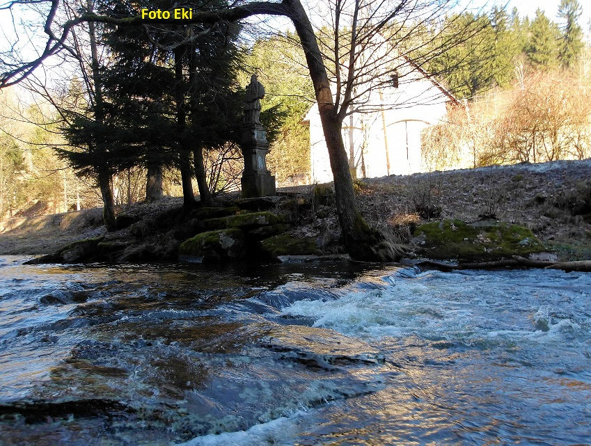 Na český břeh se vrátila silnice, na břehu u ní mě zaujal historický kamenný kříž.