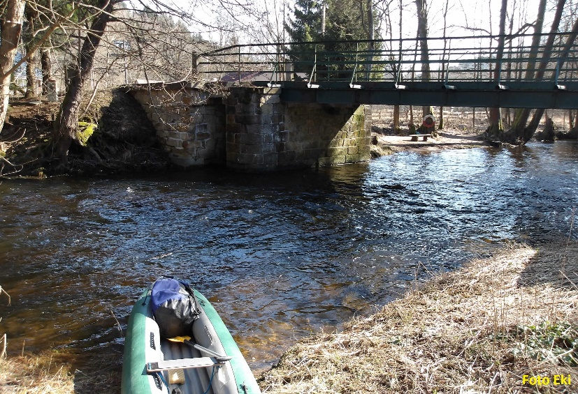 Pak mě příjemná peřejka nanesla do zbytků bývalého jezu. Ten leží za pravotočivou zatáčkou, místo bylo přehledné a sjízdné.