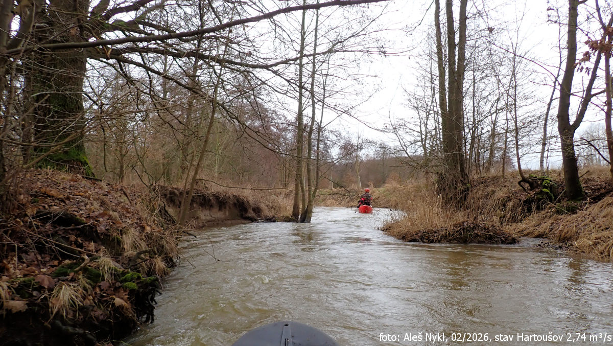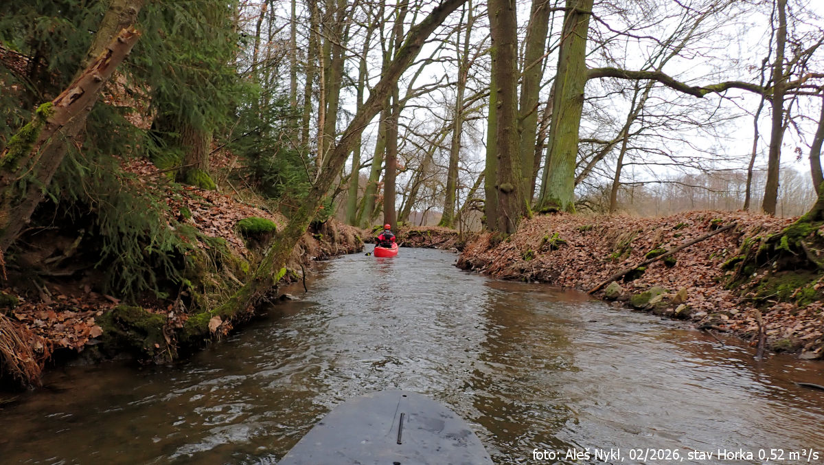 Spousta rychlých meandrů, pěkná kličkovaná, ale kdyby byl alespoň 1 m³/s, bylo by to ještě zábavnější.