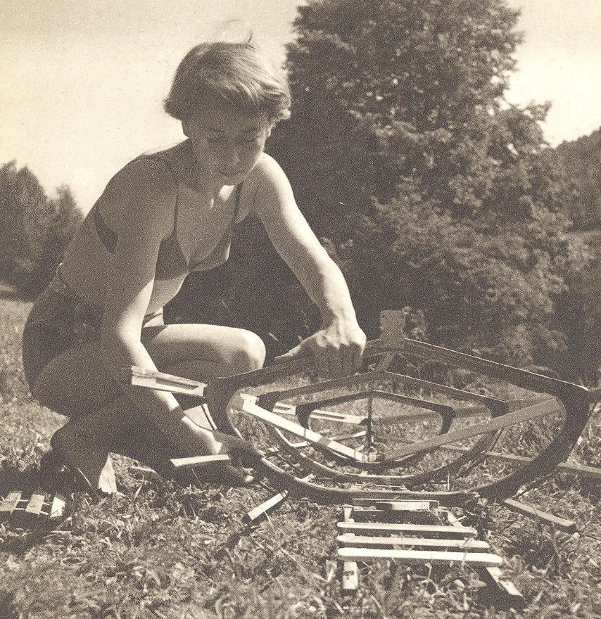 Ikonická fotografie dívky, skládající kajak (L. Sitenský: NA ŘEKU…! 1957)