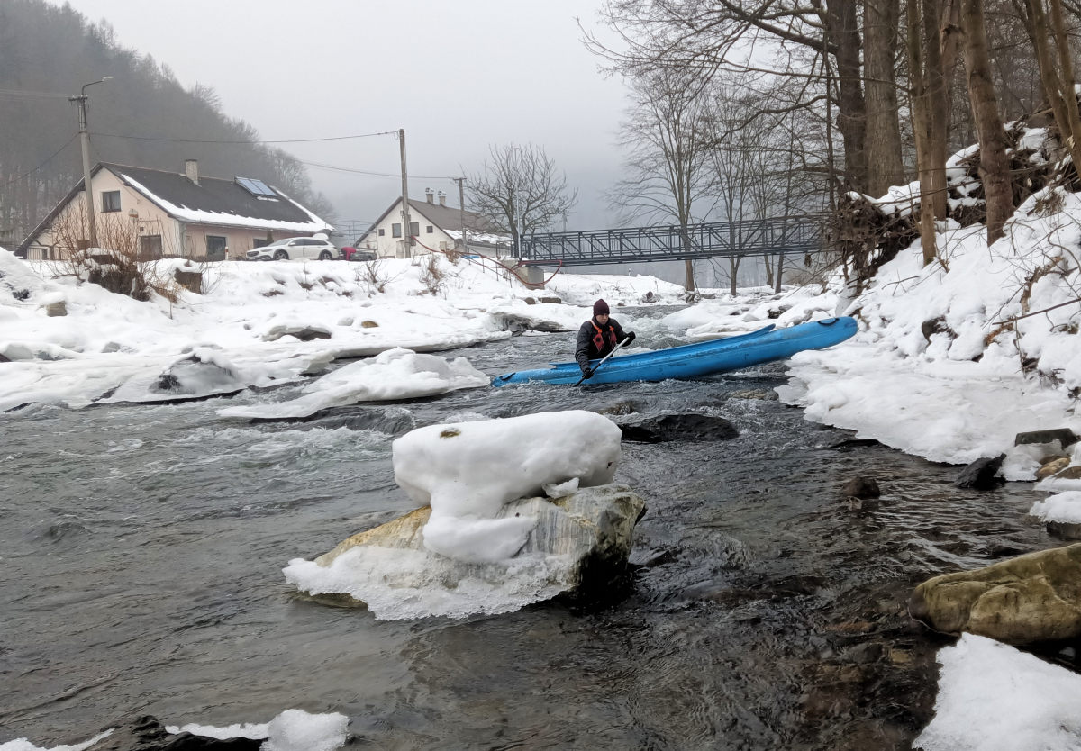 V plánu je splutí řeky Moravy z Hanušovic do Bohdíkova. Mám trochu obavu, jak to bude se zamrzlou řekou, aby se vůbec mohlo dát plynule jet. Ledové kry, zamrzlé vracáky a časté zužování řeky narůstajícími ledy od břehu do úzkého proudu uprostřed řeky, který se nakonec ztratí kdesi pod ledem, už mám taky za sebou. Ne vždy to bylo veselé a bezpečné. Jízda v zimě prostě má svá specifika.