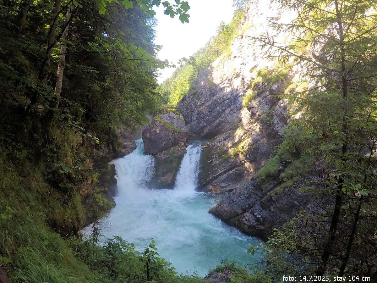 Po splutí Salzy nad i pod přehradou a návštěvě krásné soutěsky Nothklamm s úžasnou jeskyní – která však byla přímo v jejím nejužším místě uzavřena kvůli poničeným roštům – se přesouváme na naši poslední řeku. Tou je Steyr. Ani zde nejsou vodní podmínky ideální, ale je červenec, takže můžeme být vůbec rádi, že se dá splout. Stav 104 cm na vodočtu v Kniewasu při limitu 100 cm opravdu odpovídá realitě.