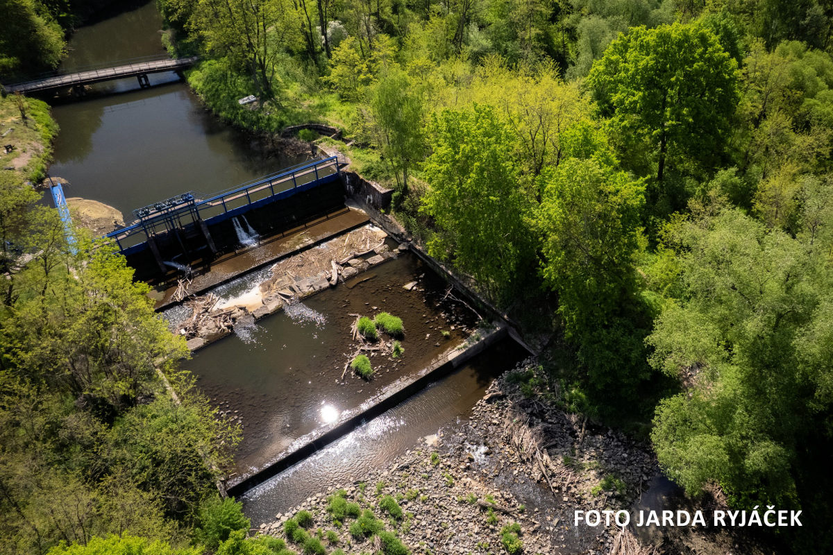 Nakonec lodě přenášíme kolem elektrárničky u prvního šestimetrového jezu Pieńsk I, protože u jezu Pieńsk II nenacházíme způsob, jak se dostat dolů z vysoké navigace. Pod suchou spádovou deskou máme poprvé za výpravu nedostatek vody a dost drhneme. Vodu nám odklonivší náhon totiž vrací až za 3,5 km (r.km 135).
