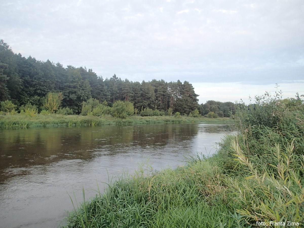 Zatavili jsme se ještě na nákup v Rychlocicích na pravém břehu. V Burzeninu by se asi dalo tábořit na pláži, ale nám se tam nelíbilo a pluli jsme dál. Po 1 km se utábořili na kraji les na levém břehu.