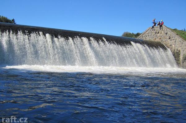 Před jezem je panelový brod.