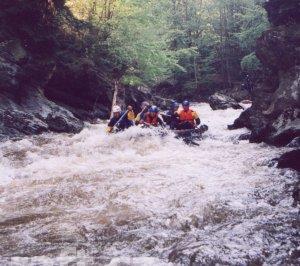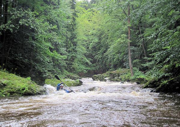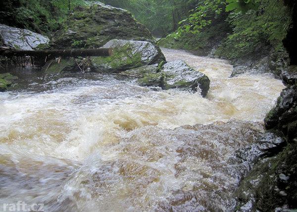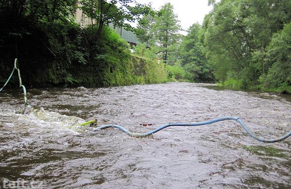 Strom přes řeku asi 100 m před Tobogánem. Dnes 8.10., při 16 m3 se dal objet těsně u pravého břehu, ...