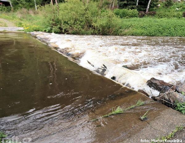 r.km 49,7 provalený jez a 50m peřej