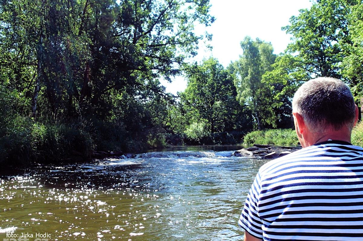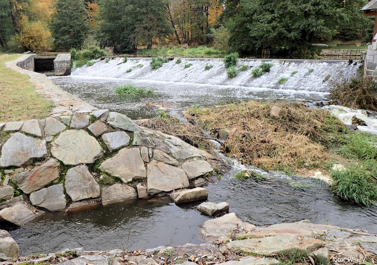 Na Nežárce je přestavován jez Hamr u obce Val. Zatím je zahražena polovina řeky a vytvořena příjezdo ...