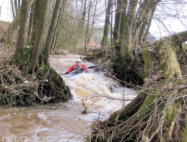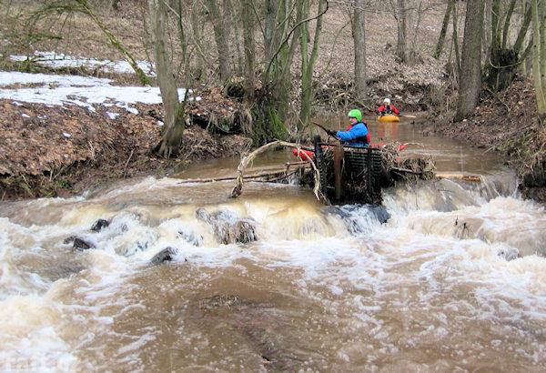 Před Suticemi 2x spadý strom přes tok, šlo přeskočit a natažená šňůra pod kterou šlo ohnout a projet ...