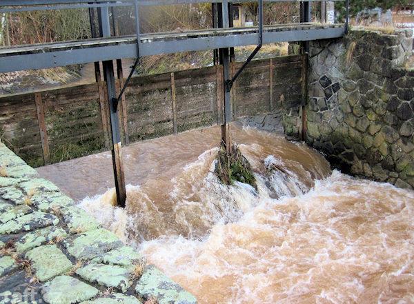 17,2 km Bělá lávka k fotbalovému hřišti od velké vody zatarasena klacky, začíná klidná voda před jez ...
