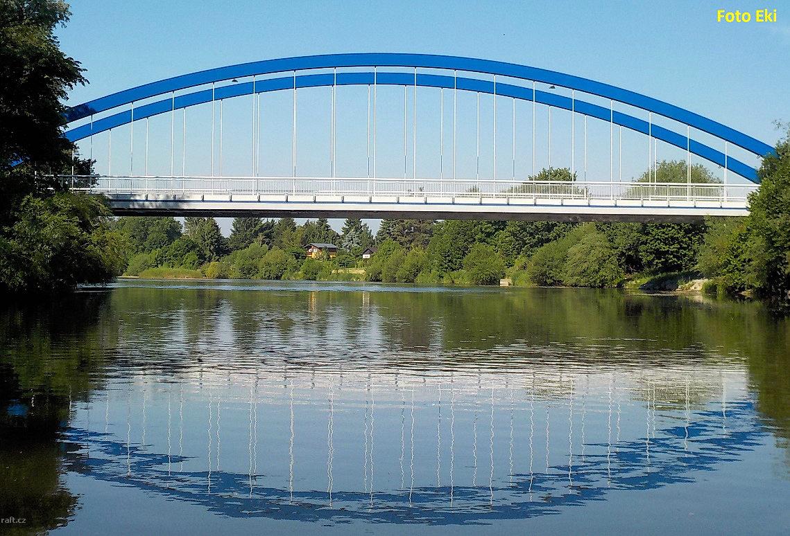 Mohutný padlý kmen přes celou řeku, cca na 21,3 km - mezi kamenným záhozem a Štěňkovem. Je to za zat ...