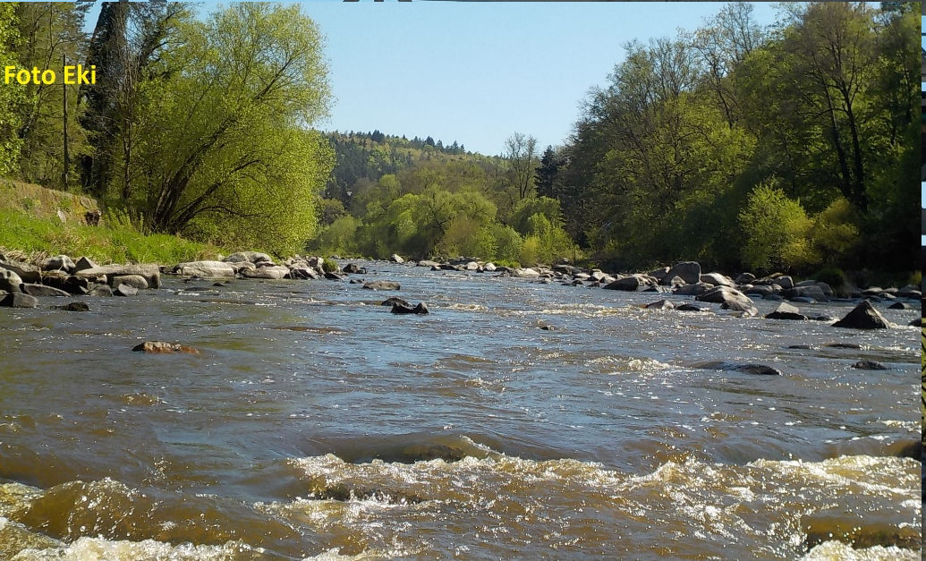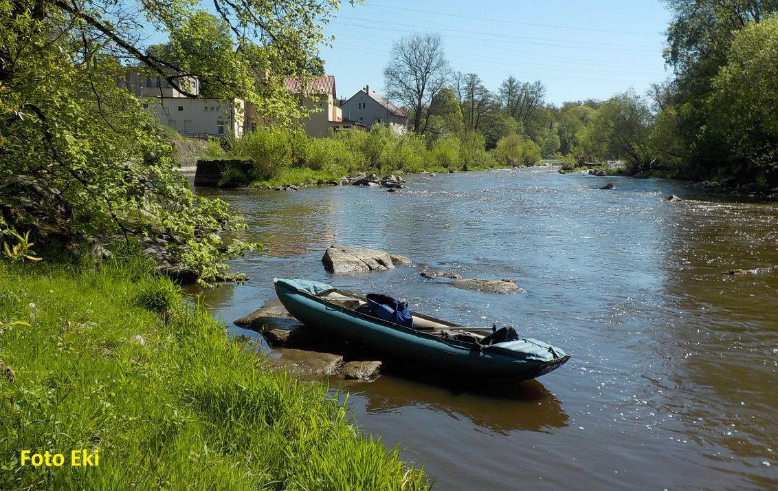 Wehr umtragen links Stauhohe (m) 1,6 Kanal links, dále několik Wehr Stufe befahrbar und folgenden 700 m Brücke Steg 1,0 km (GPS: 49.561943041,15.918403566) (GPS: 49.5632767,15.9227494) |